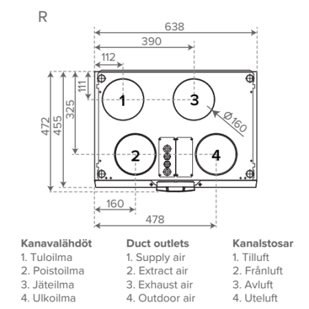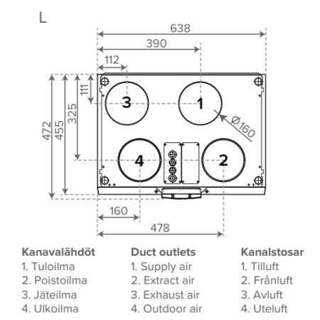 • Maksimaalne sissepuhkeõhu vooluhulk @ 100 Pa