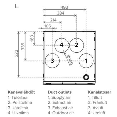 A-H mudelid erinevad ainult kanalite väljundite poolest ning kanalite väljundid asuvad samades kohtades, mis vanadel ventilatsiooniseadmete mudelitel või vajavad vaid väiksemaid kanalite muudatusi. Vallox 125 MV seadmega saab lihtsalt ja kiirelt kaasaegsete funktsioonidega energiasäästliku ventilatsiooni.
